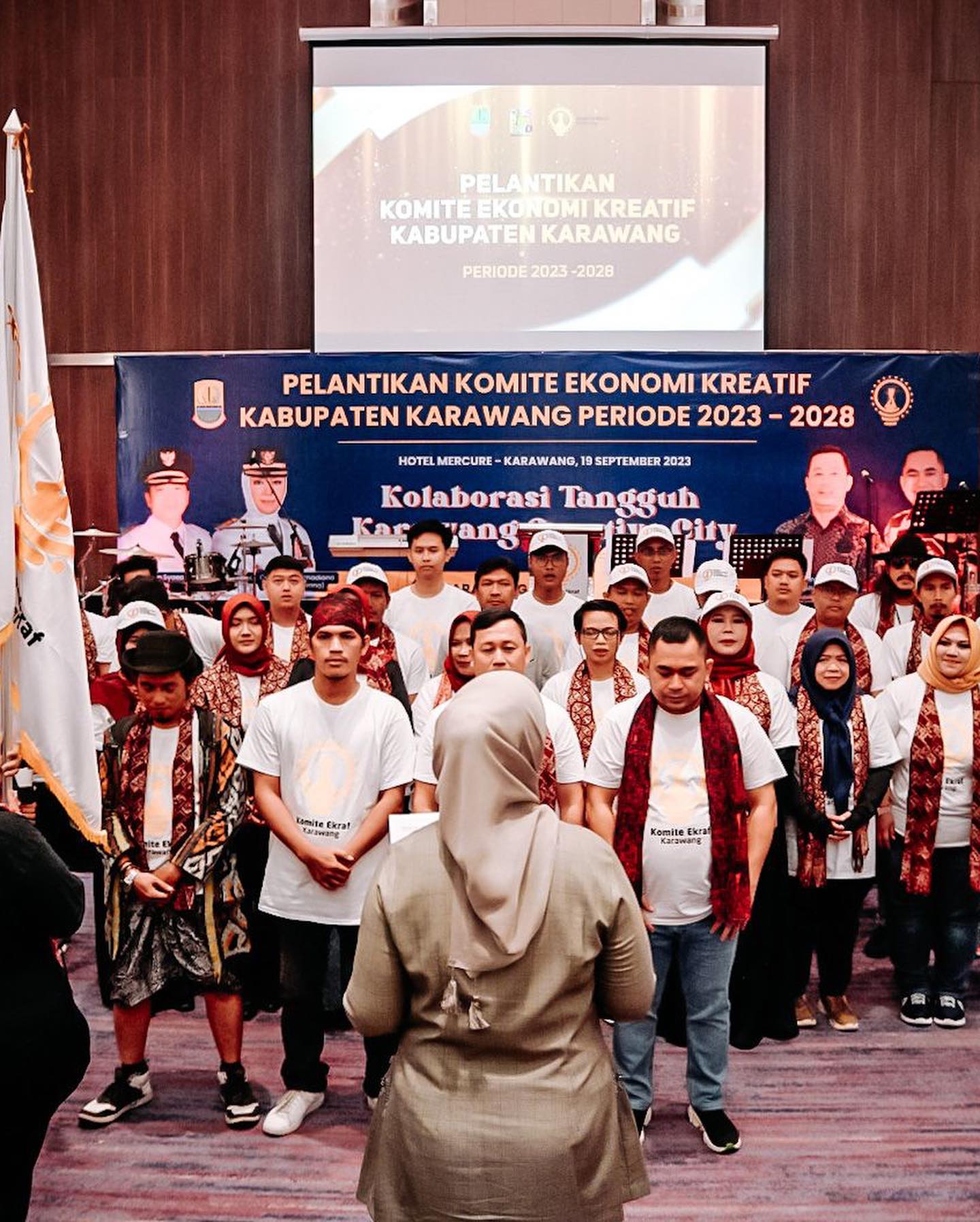 Karawang, (19/09/2023) – Suasana lantai hotel Mercure Karawang malam itu terasa beda. Ada energi optimistis yang terasa kuat ketika Bupati Karawang Hj. dr. Cellica Nurrachadiana secara resmi melantik pengurus Komite Ekonomi Kreatif (Ekraf) Kabupaten Karawang periode 2023-2028. Di antara para pelaku kreatif, UMKM, komunitas, akademisi, dan media – semua hadir berpadu dalam satu tekad besar: menggenjot ekonomi kreatif sebagai pengungkit kesejahteraan masyarakat.